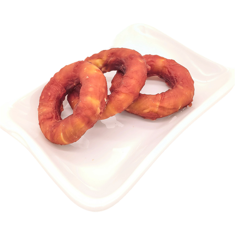Der mit Entenfleisch umwickelte 2-2,5"-Rohlederring NP011 ist ein perfekter Leckerbissen für Ihren pelzigen Freund. Da er wie ein Ring geformt ist, können Hunde ihn leicht greifen und kauen. Der innere Kern besteht aus hochwertigem Verbund-Rohleder und sorgt so für den richtigen Kauwiderstand. Während Ihr Hund daran nagt, reinigt das Rohleder sanft die Zähne und reduziert effektiv Plaque und Zahnstein, was sich hervorragend für die Erhaltung der Mundgesundheit eignet. Um die Rohhaut herum ist herzhaftes Entenfleisch gewickelt. Der reichhaltige, natürliche Geschmack der Ente zieht Hunde sofort an und macht jedes Kauen zu einem Vergnügen. Die Kombination aus zarter Ente außen und haltbarem Rohleder-Verbundstoff innen bietet ein vielschichtiges, befriedigendes Kauerlebnis. Ob zum Zeitvertreib, zum Trainieren von Belohnungen oder einfach nur zur Befriedigung ihres natürlichen Kauinstinkts, dieser Kausnack ist die erste Wahl für kleine bis mittelgroße Hunde.