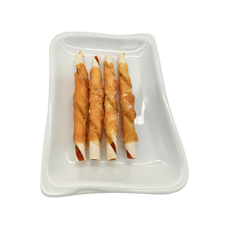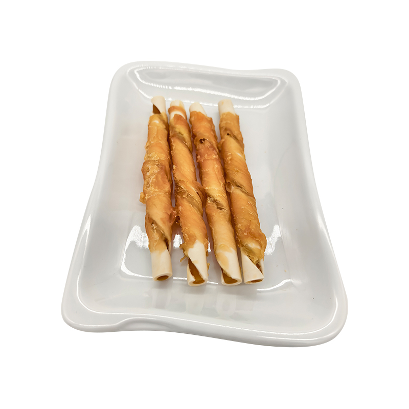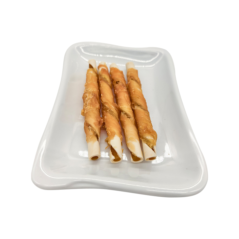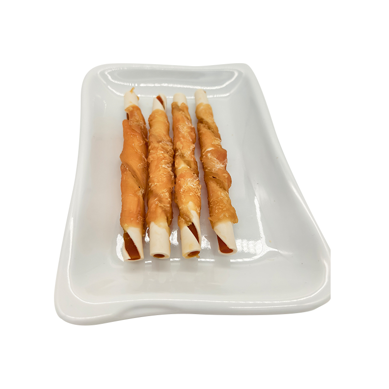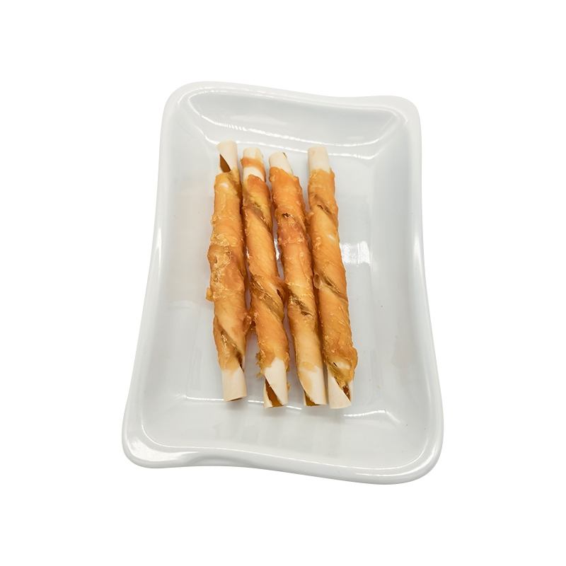 Zweifarbige, mit Stärke umwickelte Hähnchenröllchen – langlebige Kausnacks für Hunde