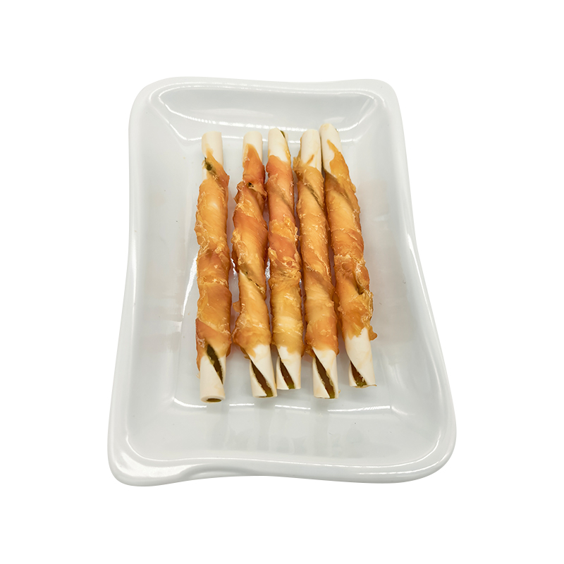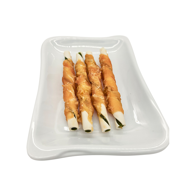 Color Starch Wrapped Chicken Rolls kombinieren erstklassiges Hühnchen mit einer Stärkebasis und bieten fünf köstliche Geschmacksrichtungen – Milch, Erdnuss, Minze, Hühnchen und Rindfleisch – um unterschiedliche Geschmäcker zu befriedigen. Es verfügt über eine doppelte Textur: eine feste, zähe Außenschicht und eine reichhaltige, verlockende Füllung; Seine extra lange Kaubarkeit lindert wirksam Trennungsangst.